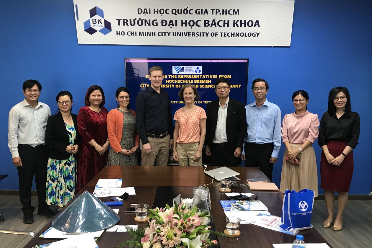 Im Jahr 2020 konnte in der Fakultät 2, Abteilung Bau und Umwelt, ein ERASMUS+ Projekt mit dreijähriger Laufzeit eingeworben werden. Ziel war es, die internationale Hochschulkooperation mit der Ho Chi Minh City University of Technology (HCMUT) und insbesondere den Austausch von Studierenden, Lehrenden und Verwaltungsangestellten aufzubauen und zu vertiefen. Aufgrund der Corona-Pandemie war zunächst kein physischer Austausch von Studierenden- und Lehrenden möglich. Im November 2022 besuchten uns dann Dr. Vo Thanh Hang und Nguyen Thi Hieu, beide Lehrende in der Fakultät Environment and Natural Resources der HCMUT. Sie hielten Vorlesungen in den Themenfeldern “Sustainable Development: Green Growth and Green New Deal in Vietnam” sowie “Environmental Law and Policy” im internationalen Bachelorstudiengang Umwelttechnik.