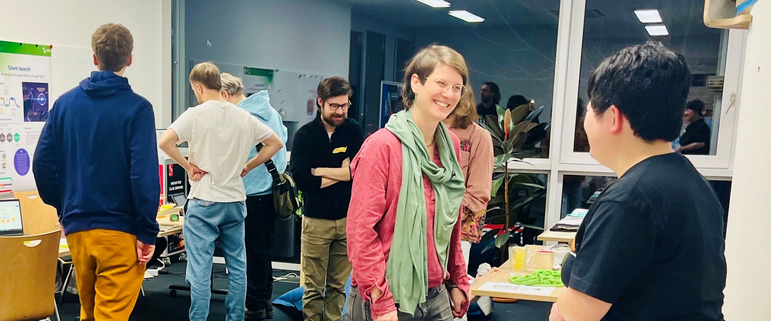 Schon ab 15 Uhr präsentierten 18 aktuelle Gründungsteams des FreiRAUMs ihre Projekte an eigenen Ständen. Zahlreiche Besucher:innen nutzten die Gelegenheit, intensive Einblicke in die vielfältigen Vorhaben zu erhalten - vom neuen Keramikmalstudio Charly's Artbox, über den neuartigen Treppenlift Stairstepper bis zum neuen Kompakthausprojekt Ankerplatz. Der beliebte Crêpes-Stand trug – wie schon in den vergangenen Jahren – nicht nur zum leiblichen Wohl bei, sondern erfüllte das gesamte Gebäude über viele Stunden mit einem vorweihnachtlichen Duft.