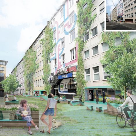 Wohin entwickelt sich die Bremer Innenstadt? Welche Aufgaben kommen auf unsere Städte und Innenstädte zu? Können wir schon heute einen Blick in die Zukunft werfen, um die Weichen für eine Neuausrichtung von Planungzielen zu stellen? 20 Master-Studierende der Hochschule Bremen (HSB) und der Hochschule für Künste (HfK) beleuchten im Sommersemester 2021 im Kooperationsprojekt „Interspace – Die nachhaltige Stadt“ die multiplen Krisen und Chancen der Innenstadtentwicklung: geringe Aufenthaltsqualität, zu wenig Wohnraum, die Ausgestaltung der Verkehrswende und der Umgang mit zunehmendem Leerstand sind nur einige der Herausforderungen, mit denen sich die Studierenden Masterstudiengang „Architektur, Environmental Design M.A.“ der HSB und dem Masterstudio „Integriertes Design, System und Interaktion“ der HfK kritisch ausneinandersetzten. In interdisziplinären Teams haben die Studierenden zu diesen und weiteren Fragen konkrete Visionen und Konzeptvorschläge entwickelt.