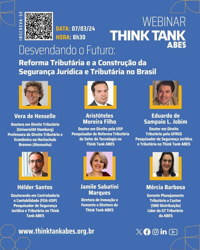Das Thema des geplanten Webinars mit Prof. Dr. Vera de Hesselle lautet übersetzt: "Die Steuerreform und die Schaffung von Rechtssicherheit und Steuersicherheit in Brasilien".