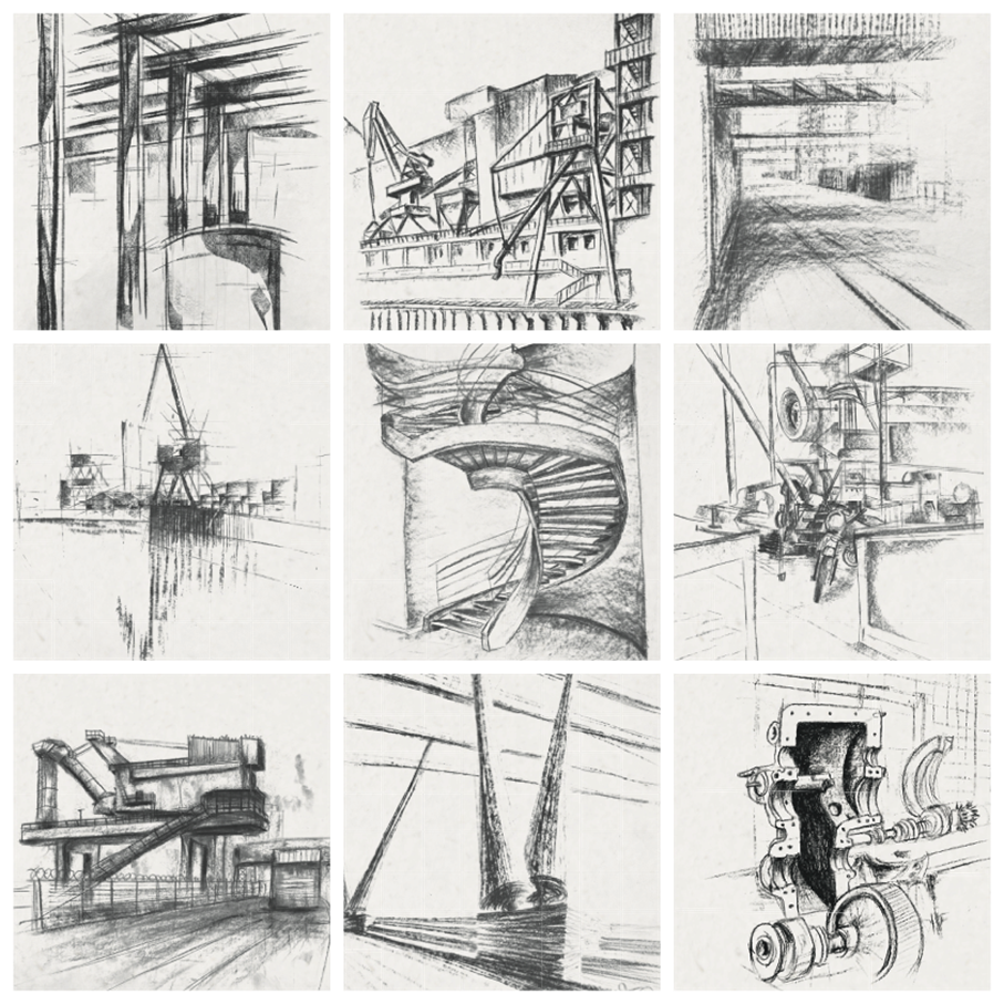 Die ausgestellten Zeichnungen sind vergangenes Sommersemester im Wahlmodul Freihandzeichnen entstanden. Ziel war es, die Beziehung von Figur und Grund/ Körper sowie Raum zeichnerisch zu erkunden. Dazu fanden im Mai und Juni 2023 mehrere Workshops im Innen- und Außenraum statt, in denen Motive und Darstellungstechniken in skizzenhaften Übungen erprobt worden sind. In einer intensiven Blockveranstaltung im August wurden die Szenerien konkretisiert, dazu wurde an täglich wechselnden Standorten in Bremen gezeichnet.
