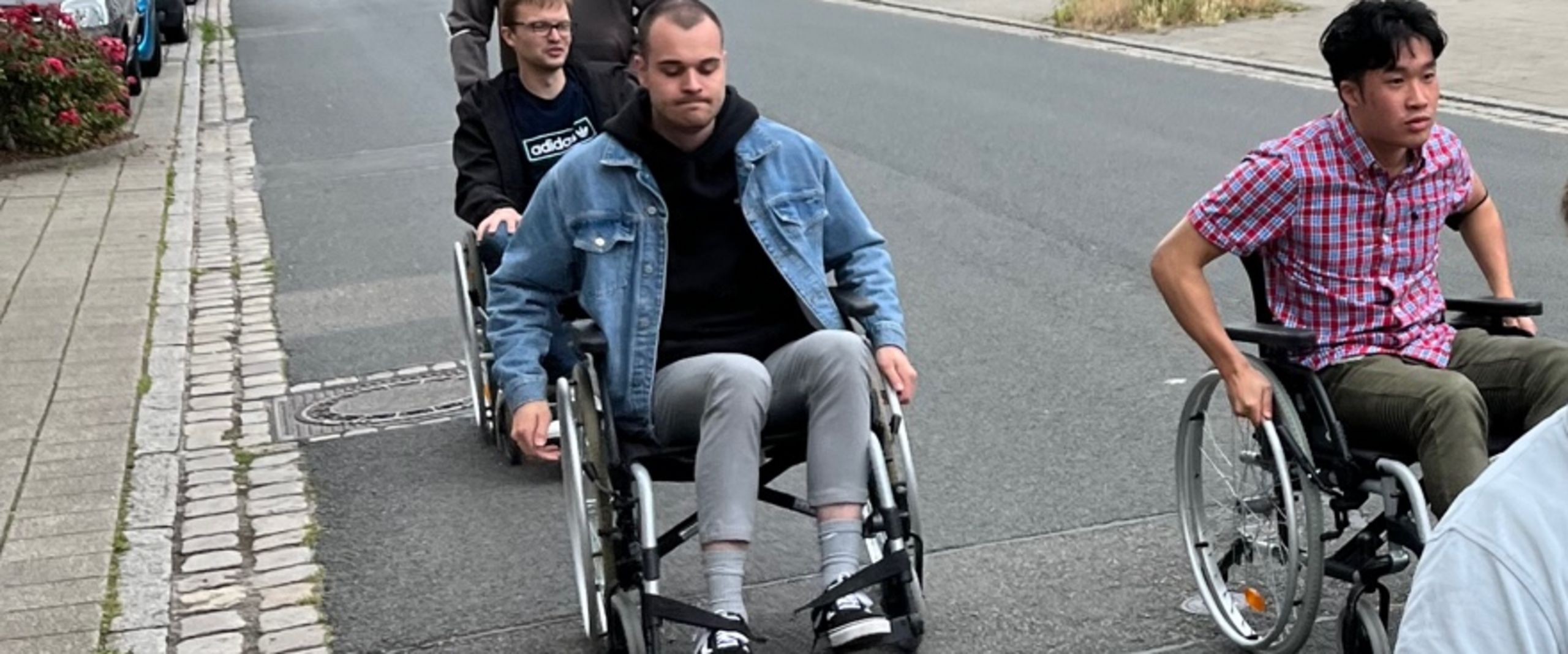 Personen, die im Rollstuhl sitzen, sind selbstverständlich ganz herzlich eingeladen, unsere Tour zu begleiten, uns von ihren Erfahrungen zu berichten und die Tour mit ihren Perspektiven zu bereichern. Wir freuen uns, wenn wir gemeinsam über den Campus rollen!