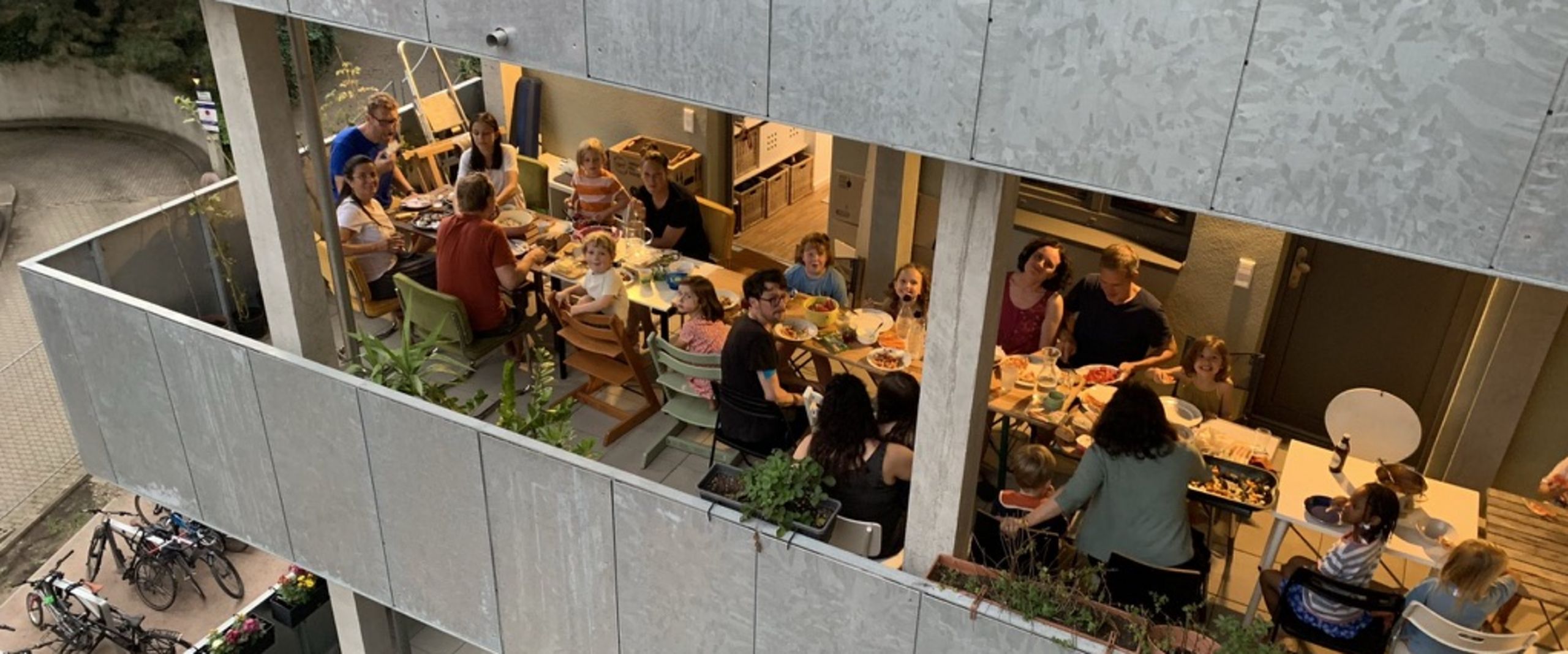 Auf dem Grundstück in der Friedensallee 94 in Ottensen entstand ein gemeinschaftliches Wohnprojekt, das neben 20 bezahlbaren Eigentumswohnungen auch 10 Wohnungen für Menschen mit Dringlichkeitsschein beherbergt. Autofreiheit, Holzmassivbauweise und soziale Durchmischung sind Themen, die innerhalb der Gemeinschaft ausgehandelt wurden, um die gemeinsamen Nachhaltigkeitsziele zu erreichen.
