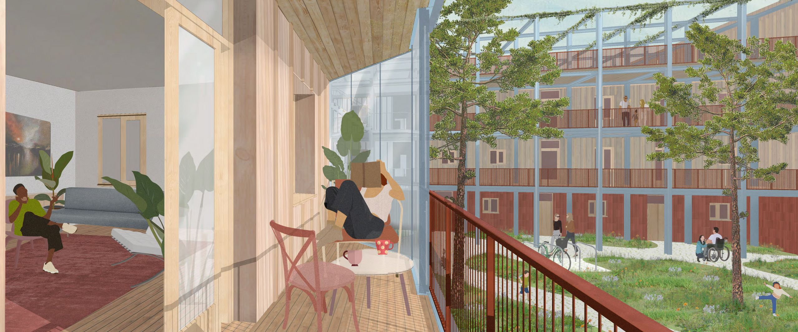 Ein besonderer Fokus liegt auf nachhaltiger Architektur. Der Baustoff Holz spielt dabei eine zentrale Rolle: Er ermöglicht ressourcenschonendes Bauen, reduziert CO₂-Emissionen und steht für eine klimafreundliche Stadtentwicklung. In Verbindung mit kompakter Bauweise zeigen die Entwürfe eindrucksvoll, wie umweltgerechtes Planen und der steigende Bedarf an Wohnraum in der Stadt zusammengedacht werden können.
