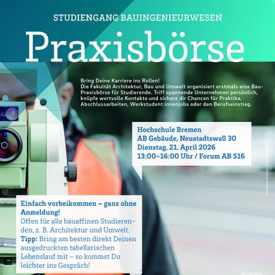 Die Abteilung Bau und Umwelt unterstützt Studierende aktiv mit Stipendien für einen erfolgreichen Abschluss des Studiums. Hier finden Sie Informationen zu spezifischen Angeboten der Abteilung wie dem Günter-Meyer-Stipendium und zum Deutschland-Stipendium. Darüber hinaus bietet auch die Hochschule Bremen vielfältige Unterstützungen zur Studienfinanzierung und für Stipendien an.