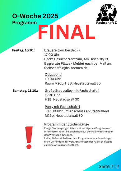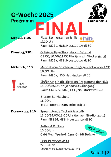 Bei weiteren Fragen können Sie sich gern direkt an die Fachschaft wenden. Dies geht entweder über die Emailadresse fachschaft3@hs-bremen.de oder über den Instagramaccount fachschaft3_hsb.
