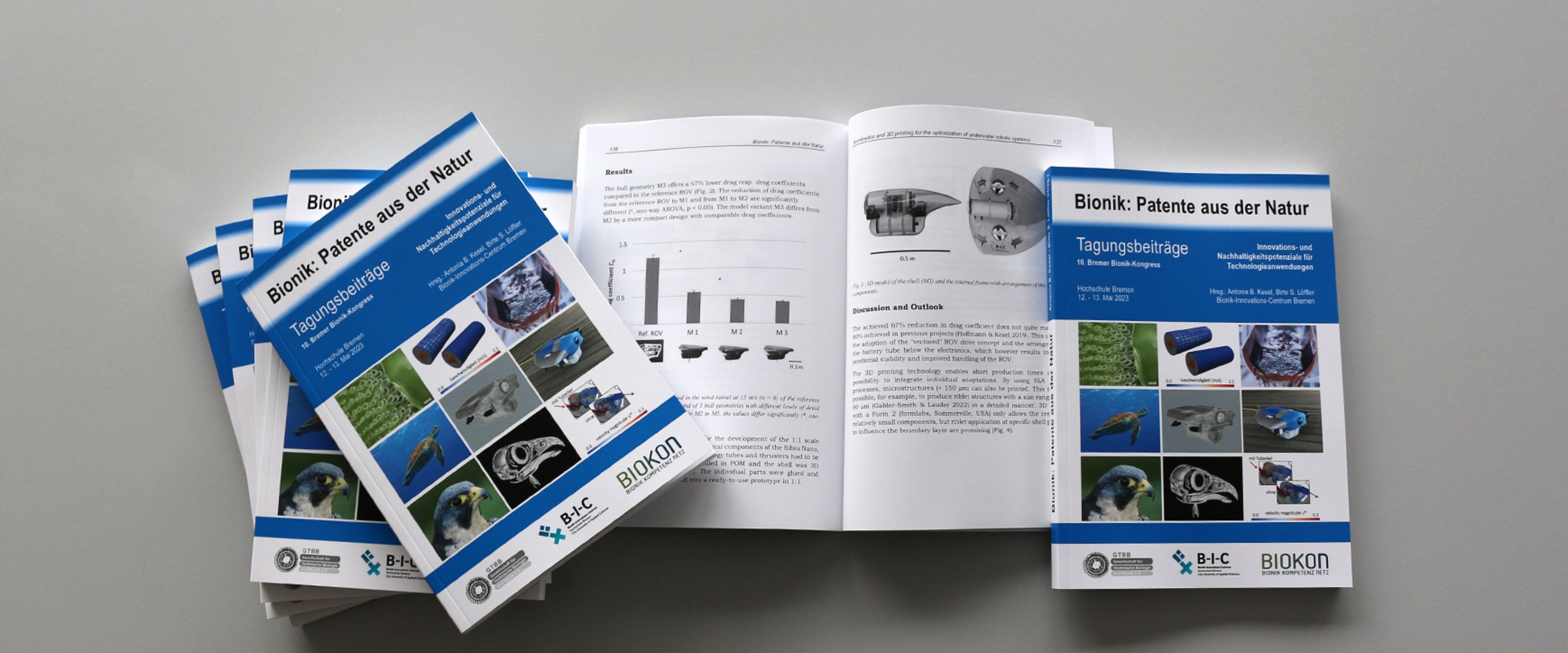 Unter dem Titel „Patente der Natur“ fand der 10. Bionik-Kongress mit mehr als 130 Teilnehmenden aus Wissenschaft, Praxis und Gesellschaft im Mai 2023 an der Hochschule Bremen (HSB) statt. Über 70 Fachvorträge, Poster-, Filmbeiträge und Ausstellungsexponate informierten über bio-inspirierte technische Innovationen und aktuelle Potentiale aus der Bionik. Mehr als 20 Beiträge sind nun in der Publikation nachzulesen. Wichtige Themen sind Nachhaltigkeit, technische Innovationen und der Transfer von Inspirationen von natürlichen Vorbildern in technische Modelle. Zudem geht es um das Finden von neuen Lösungsansätzen für technische Probleme in der Natur. Beispiele sind Brennesselhaare als Vorbild für Mikronadeln mit denen Medikamente schmerzfrei injiziert werden können oder das Projekt BIOINSPACED, indem Szenarien mit Gecko-Tape und Holzwespen-Bohrer zur Beseitigung von Weltraumschrott entwickelt wurden. Die Publikation zeigt zudem, wie wichtig der Standort Bremen mit dem seit 20 Jahren bestehenden, weltweit ersten Studiengang Bionik ist, um weiterhin Forschungsthemen in diesem Bereich sichtbar zu machen.