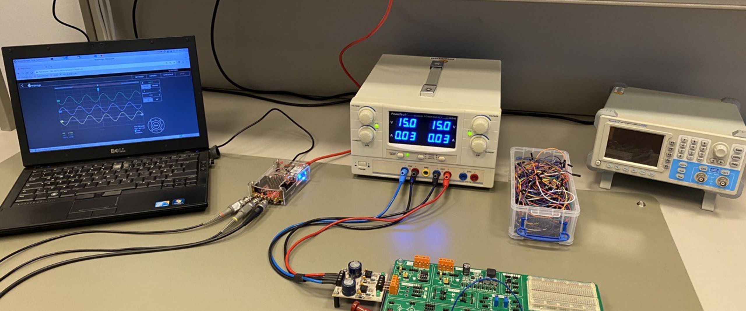 In this laboratory, measurements and tests on circuits take place at six laboratory stations, which, in addition to signal generators, voltage sources and multimeters, are also equipped with Red Pitaya STEMlabs and ASLK Pro boards.