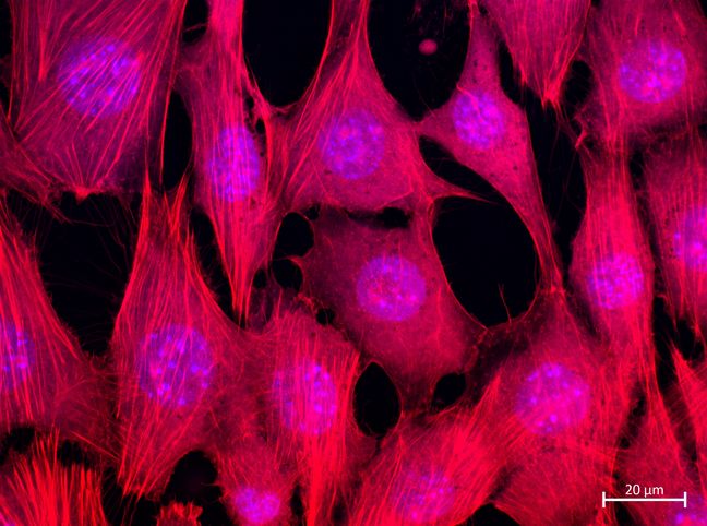 We study how cells proliferate and migrate on fibrous biomaterials and how the actomyosin cytoskeleton and cell morphology are changed. Moreover, we are interested in the interaction of fiber scaffolds with bacterial cultures to screen them for antimicrobial properties. Typical techniques we use to study cell interactions are viability assays, fluorescence microscopy or live-cell tracking in combination with scanning electron microscopy.