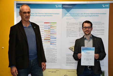 Gabi Beer, Sören Franzke and Nick Zinthäfner each received the Karl Engeland Prize 2021, endowed with 1,000 euros, for their final theses, which were honoured by juror Dipl.-Ing. Architekt Harm Haslob. In the Bachelor's degree programme in architecture, Gabi Beer and Nick Zinthäfner developed attractive, sustainable living spaces for Gartenstadt Süd, which was built in the 1950s as a new development area without a distinct centre. With two expressive, mixed-use structures, Gabi Beer redesigned the area around the old weekly market into a lively neighbourhood square. Nick Zinthäfner designed a flexible residential building with commercial space between two existing row buildings. The lower floors are designed like a "reinforced concrete base" over which residential units are stacked in bulkhead construction made of solid wood. In his Master's degree in Building and Environment (Infrastructure), Sören Franzke analysed possible solutions for the development of new urban districts in Bremen and developed a future-oriented cable car line between Rablinghausen and Gröpelingen.
