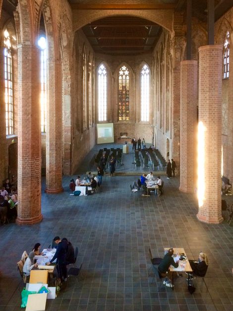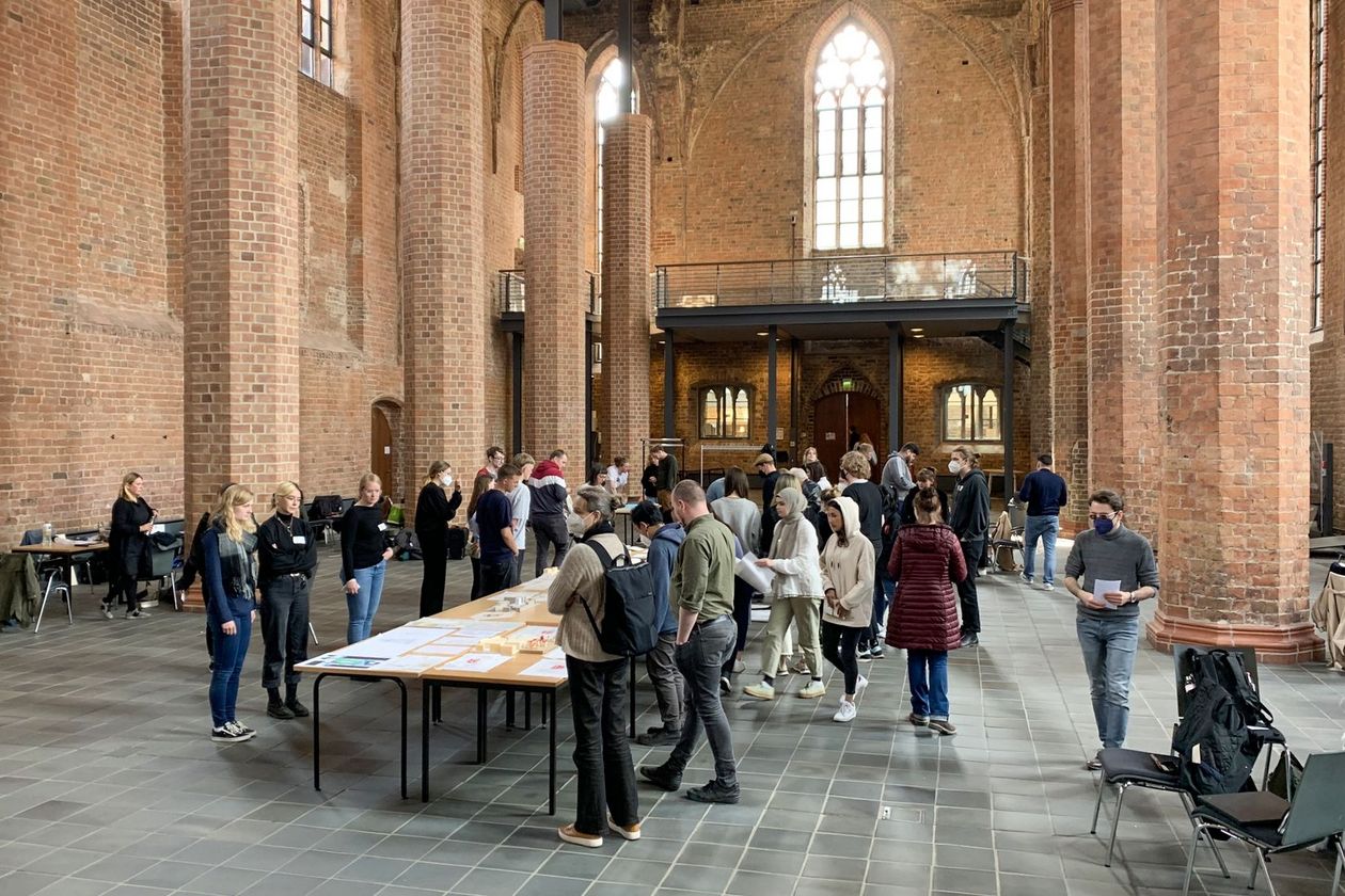 To this end, they held a two-day workshop in the nave of the Paulikloster monastery, got an idea of the historically grown urban square and presented their first drafts.