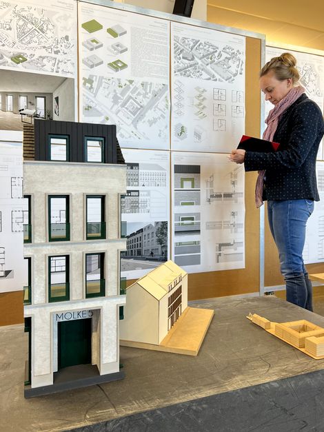 Since April of this year, 65 students from the Bremen University of Applied Sciences with the School of Architecture Bremen have been working on their bachelor's theses on the question of how this inner-city area can be planned and redefined in the sense of "urban repair". In addition to an urban planning and programmatic/content-related idea for the entire area, the aim was to design an individual building block in more detail as an example and thus show what an urban house could look like here.