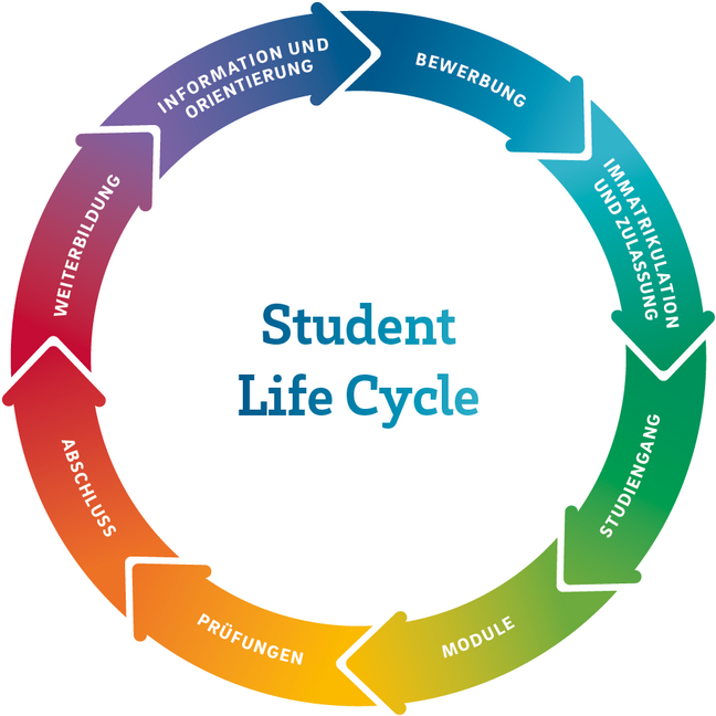 Der Weg der Studierenden durch die Hochschule folgt administrativ einem wiederkehrenden Muster von der Bewerbung bis zum Abschluss des Studiums.