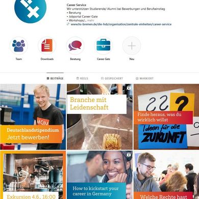 Als Career Service unterstützen wir Studierende und Alumni bei allen Fragen der Bewerbung und des Berufseinstiegs (Beratung, Workshops, Jobportal), fördern den Aufbau zentraler Alumnistrukturen an der Hochschule Bremen und koordinieren das Deutschlandstipendium.