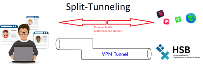 Wer für den VPN-Zugang zur HS-Bremen einen Split-Tunnel verwendet, leitet lediglich die Anfragen weiter, die internen Services der Hochschule betreffen.