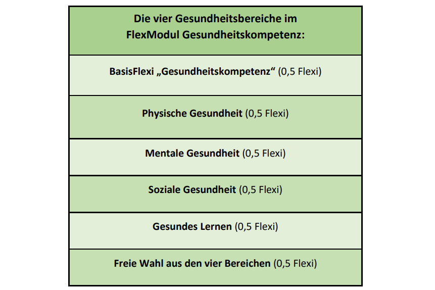 Wenn du die entsprechende Anzahl von Flexis für das FlexModul Gesundheitskompetenz erreicht hast, kannst du zusammen mit der Prüfungsleistung “Portfolio” 3 ECTS-Punkte erhalten. Da du im Portfolio studienbegleitend zu den Flexis und zum Thema Gesundheitskompetenz reflektierst, ist es sinnvoll, dass du dich frühzeitig entscheidest, ob du das FlexModul machen möchtest.